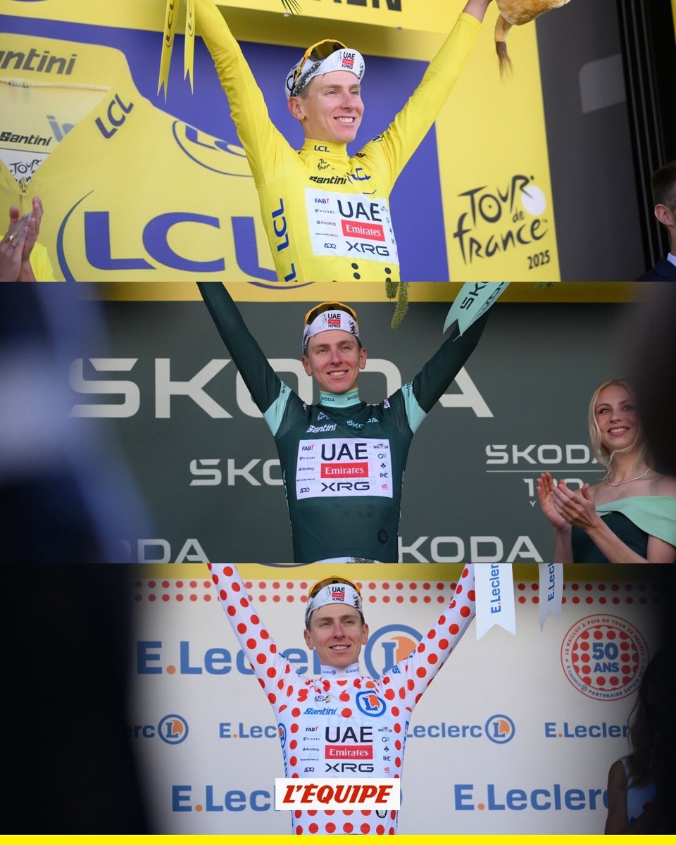 В среду Тадей Погачар примерил все три майки Тур де Франс