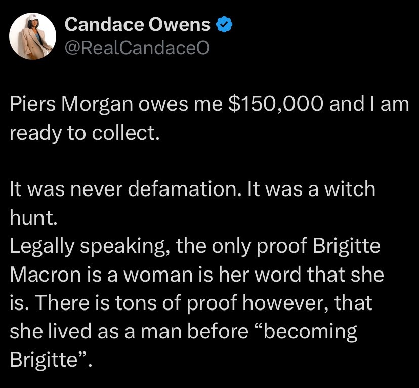 ‘Only proof Brigitte Macron is a woman is her word’ — insists Candace Owens, creator of doc film ‘Becoming Brigitte’ Adds ‘tons of proof she lived as a man before becoming Brigitte’ ‘Piers Morgan owes me $150,000 and I am ready to collect’
