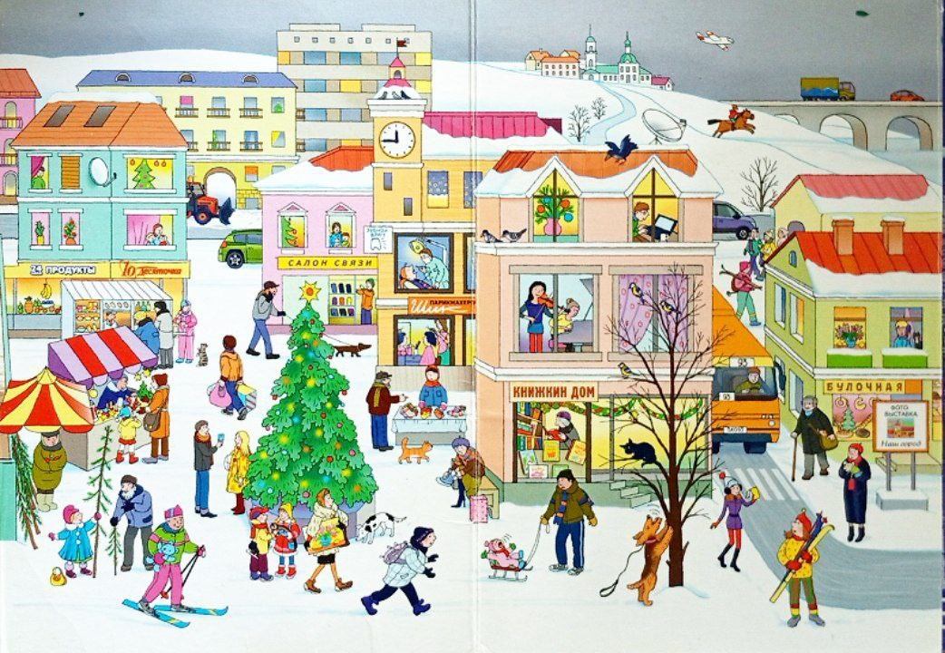 Найдите: - дом, в котором живёт художник, - трёх кошек, - сосчитать количество птиц.
