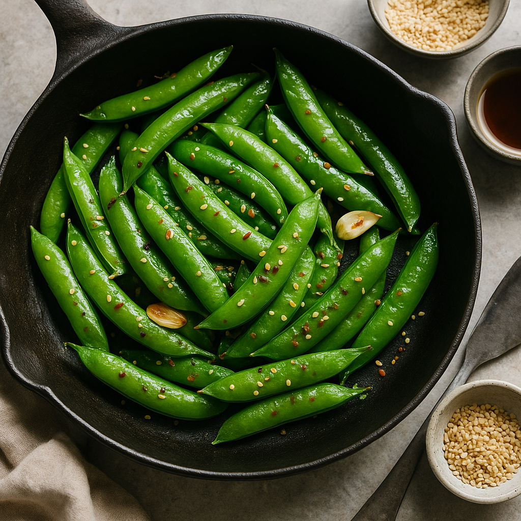 🍳 Рецепт: Обжаренные стручки гороха с кунжутом и чесноком