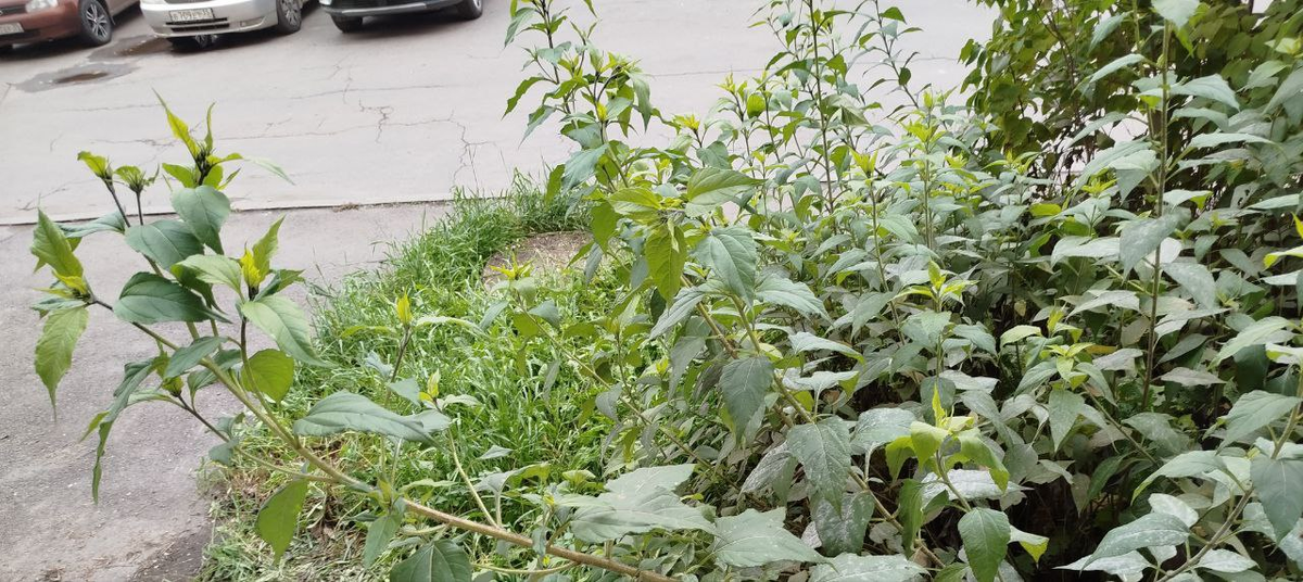 В этом году хотела попробовать ферментировать листья топинамбура. Но что-то забегалась и забыла. Ведь для приготовления настоек, отваров и чая лучше всего подходят молодые листья, которые нужно срезать еще до цветения растения. Однако это начинание у меня не получилось. Хотела было расстроится, но передумала😁. Решила, что в следующем году сделаю. Закрыла дачный сезон. Приезжаю в город, а у нас на газоне подрастает топинамбур и еще даже цвет не набрал. 😃👍 В июне у нас во дворе косили траву, ну топинамбур скосили за одно... Видимо рабочий не дачник был и скосил😄, решил, что это сорняк.