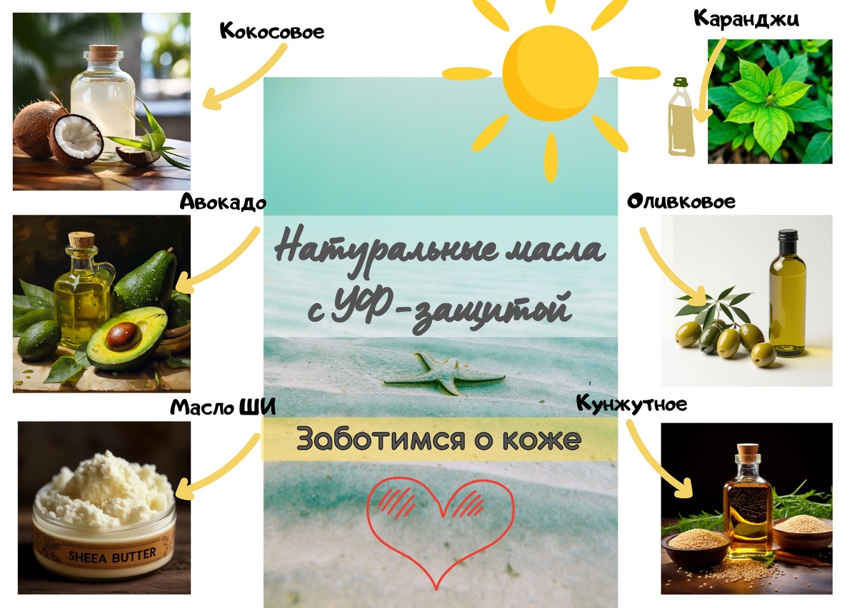 Солнцезащитные растительные масла являются довольно эффективным и натуральным средством защиты кожи от вредных УФ-лучей. Их уникальные свойства помогут нам не только предотвратить солнечные ожоги, но и обеспечить увлажнение и питание кожи. При выборе масла обязательно обращайте внимание на качество масла!
