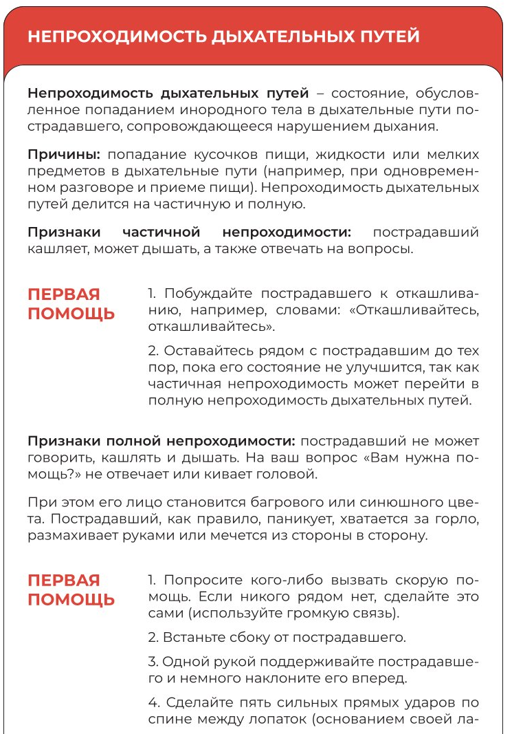 2. Оставайтесь рядом с пострадавшим до тех пор, пока его состояние не улучшится, так как частичная непроходимость может перейти в полную непроходимость дыхательных путей.