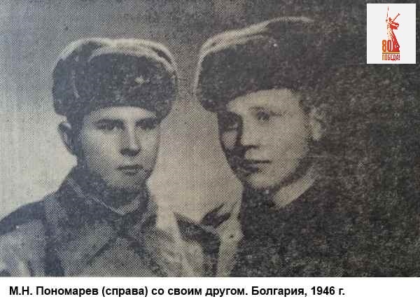 В одном из боев Михаила ранило в руку и его направили в госпиталь. Уже весной 1944 г. стал разведчиком-наблюдателем в артиллерийском полку, входившем в резерв Верховного Главнокомандующего. Разведчик в артиллерии должен находится на передовой – это ежеминутный риск. Основное его оружие – бинокль, стереотруба да ещё телефон, чтобы передавать координаты противника и корректировать огонь. Но судьба берегла Михаила Пономарева от шальной пули.