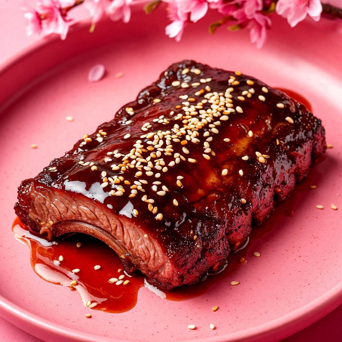 (Хрустящие, дымные, с идеальной глазурью) 🍖 Ингредиенты (на 2 порции): - Свиные ребра — 600 г - Яблочный сок — 100 мл - Кунжут — 10 г (для подачи) Сухая обвалка: - Копчёная паприка — 15 г - Кумин (зира) — 5 г - Гранулированный чеснок — 10 г - Молотый имбирь — 5 г - Соль поваренная — 6г Глазурь терияки: - Соус терияки — 50 мл - Хойсин — 30 мл - Рисовый уксус — 20 мл - Паста чили — 10 г (по желанию остроты) --- 🔥 Пошаговый рецепт: 1. Подготовка ребер 1. Обвалка: Смешайте паприку, кумин, чеснок, имбирь и соль. Тщательно обваляйте ребра в смеси. 2. Запекание: - Заверните ребра в фольгу (плотные конвертики). - Добавьте внутрь по 50 мл яблочного сока на порцию. - Запекайте 2 часа при 160°C (мясо должно легко отделяться от кости). 2. Глазурь 1. Смешайте терияки, хойсин, уксус и чили-пасту. Доведите до кипения и уварите на 30% (должна загустеть). 2. Финиш: - Достаньте ребра, смажьте глазурью. - Запекайте 5–7 минут при 200°C (чтобы карамелизовалось).