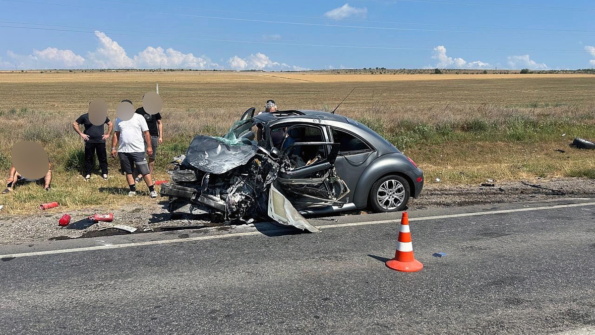 «Фольксвагену» при обгоне не хватило то ли времени, то ли лошадок, и он оказался лицом к лицу с авто «электричкой». Шесть человек в джипе Evolute несколько секунд ошарашено наблюдали, как на них несется «Фольксваген», избежать столкновения с которым невозможно. Удар был такой силы, что у «Фольксваген Жук» оторвало преедние колеса и превратило «морду» в полную жесть. Спасла людей в «немце» система безопасности и усиленный кузов «купе». При экстренном торможении «Фольксваген» сильно клюнул носом и «Эволют» по нему как по трамплину перевернулся набок и скользил так до обочины, где остановился, ударившись крышей о стволы деревьев. В «Эволюте», как сообщается, находились шесть человек, включая водителя. Несмотря на серьезные повреждения транспортных средств никто не погиб – Госавтоинспекция Крыма сообщила что «пять человек получили травмы различной степени тяжести, в том числе один ребенок». Были машины местными или приехали в Крым из других регионов не уточняется. ДТП случилось в селе Танк