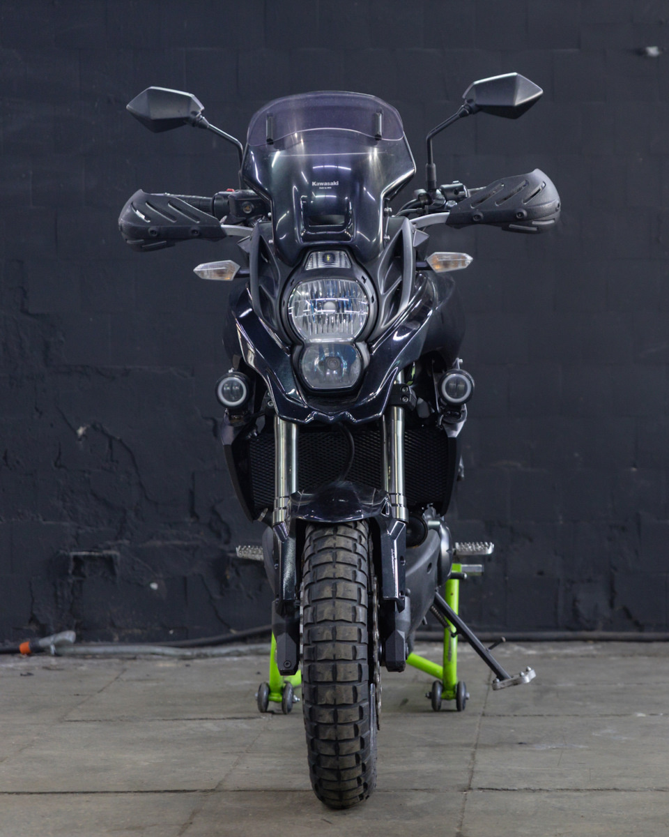 KLE650C, также известный как Versys 650, сочетает в себе комфорт туристического мотоцикла с динамикой дорожного аппарата. Параллельный твин с жидкостным охлаждением обеспечивает ровную тягу во всём диапазоне оборотов, а длинноходная подвеска с ходом 150 мм спереди и 145 мм сзади гарантирует комфорт на неровных дорогах. В отличие от более специализированных BMW F800GS, эта модель ориентирована прежд