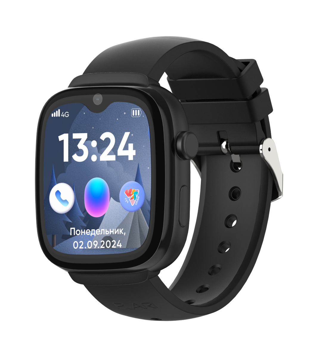 Стильный круглый IPS дисплей с диаметром 1.3 дюйма и разрешением 240x240 пикселей обрамлён специальным бортиком для предотвращения повреждений. Ребёнку доступно общение по аудио- и видеосвязи на 4G скоростях с контактами, разрешёнными родителями, а также в голосовом чате и мессенджере KidGram – детском Telegram под контролем родителей. Сбоку от экрана расположена камера 2 Мп для видеозвонков и фотографий, которыми можно делиться с семьёй и друзья-ми в KidGram.