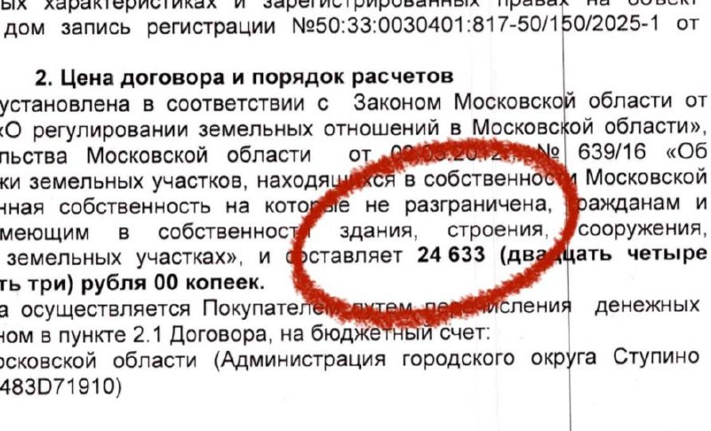 Мой клиент выкупил у государства в Московской области земельный участок за 24 633 ₽ — всего за 3 % от кадастровой стоимости. При этом рыночная цена такого же участка составляет около 1 000 000 ₽.