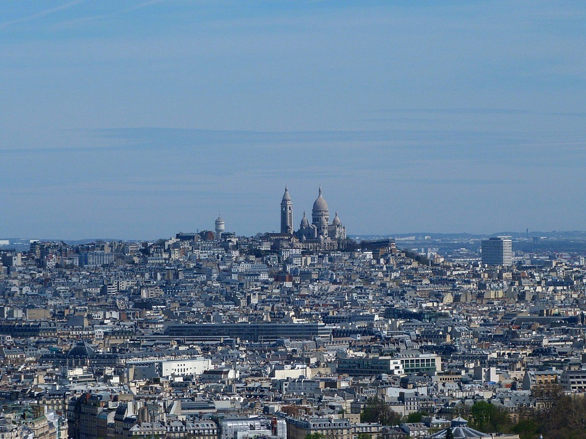Вид на район Парижа - Монмартр. Фото при большом увеличении