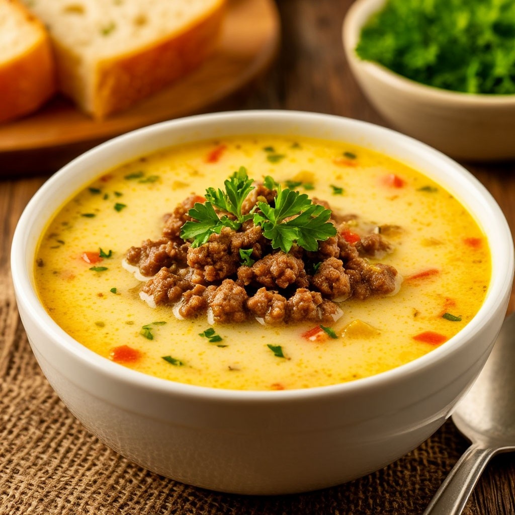 Сырный суп с фаршем обладает насыщенным и приятным вкусом благодаря сочетанию расплавленного сыра и ароматного фарша. Это создает уникальную комбинацию, которая точно порадует ваши вкусовые рецепторы. Рецепт сырного супа с фаршем не требует от вас особых кулинарных навыков, что делает его доступным даже для тех, кто только начинает осваивать искусство приготовления пищи. Все необходимые ингредиенты можно легко найти в любом продуктовом магазине, что также добавляет удобства. В этом рецепте я расскажу, как приготовить этот замечательный суп в 2,5-литровой кастрюле, чего хватит на 4-6 порций. Какие продукты понадобятся: Как готовить: 1. Прежде чем начать готовить, убедитесь, что все ингредиенты готовы к использованию. Фарш должен быть разморожен, картофель, лук и морковь вымыты и очищены. Лук нарежьте небольшими кубиками, морковь можно натереть на крупной терке или также нарезать кубиками. Картофель нарежьте кубиками среднего размера, чтобы он не разварился слишком быстро, но и не ос