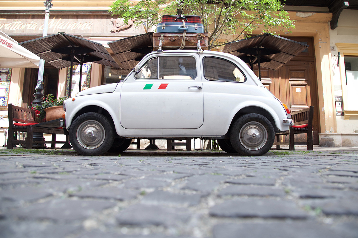 Классический FIAT 500 будто сошел с кадров старой доброй киноленты.