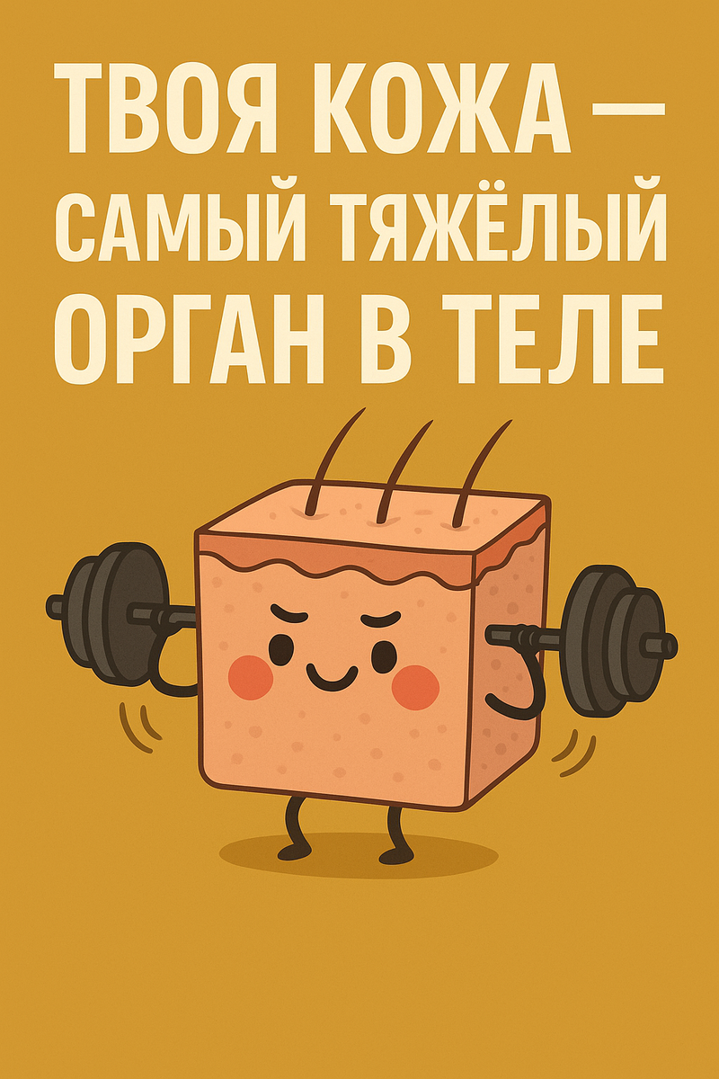Когда мы думаем о самых важных или мощных органах, на ум приходят сердце, мозг или лёгкие. Но знаешь, что действительно удивляет? Твой самый тяжёлый орган — это кожа. Да! Несмотря на то что она выглядит просто как «обёртка», кожа — полноценный орган. Более того, самый большой по площади и самый тяжёлый. У взрослого человека кожа занимает около 2 квадратных метров и весит в среднем 3,5–5 кг! Это больше, чем мозг (1,4 кг), печень (1,5 кг) и даже сердце (около 300 г). Если бы органы участвовали в «олимпиаде по весу», кожа взяла бы золото. Это не просто защита от внешней среды. Кожа: Можно сказать, что кожа — это броня, кондиционер, сенсор и фильтр в одном флаконе. Она реагирует на стресс, «показывает» эмоции (вспомни мурашки), заживляет себя сама и даже умеет «помнить» — например, при аллергии. Потому что она всегда с нами, и мы редко о ней задумываемся. Мы заботимся о коже как о внешности — кремы, загар, прыщи — но почти не осознаём, насколько она важна внутри. Потеря даже 20% кожного по
