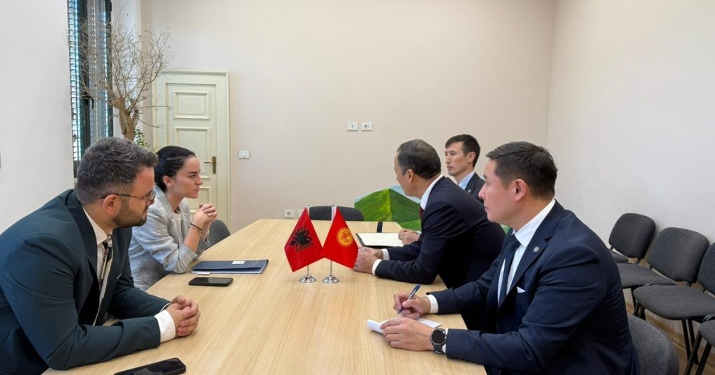 Албанияда өткөн жолугушууларда Кыргызстандын инвестициялык мүмкүнчүлүктөрү жана «Ала-Тоо Резорт» долбоору тааныштырылды. Бишкек менен Тирана ортосундагы соода-экономикалык байланыштарды кеңейтүү жана эки тараптуу кызматташтыкты бекемдөө боюнча бир катар макулдашууларга жетишилди. 🌍 Албанияда “Ала-Тоо Резорт” долбоору тааныштырылды. Кыргыз Республикасынын Албаниядагы элчиси Руслан Казакбаев 2025-жылдын 9-июлунда Тирана шаарында соода-экономикалык байланыштарды өнүктүрүү боюнча бир катар жолугушууларды өткөрдү. 🤝 Албаниянын премьер-министринин кабинет башчысы Синди Душку менен болгон жолугушууда эки тараптуу соода-экономикалык кызматташтык боюнча өкмөттөр аралык комиссия түзүү маселеси талкууланды. 🌆 Бишкек жана Тирана шаарларынын ортосундагы кызматташтыкты өнүктүрүү, бир тууган шаарлар мамилесин орнотуу максатында Тирана шаарынын мэри Ануэла Ристани менен жолугушуу өттү. 📈 Элчи Казакбаев Албан инвестиция жана өнүктүрүү агенттигинин директору Лаура Плак менен Кыргызстандын Улуттук ин