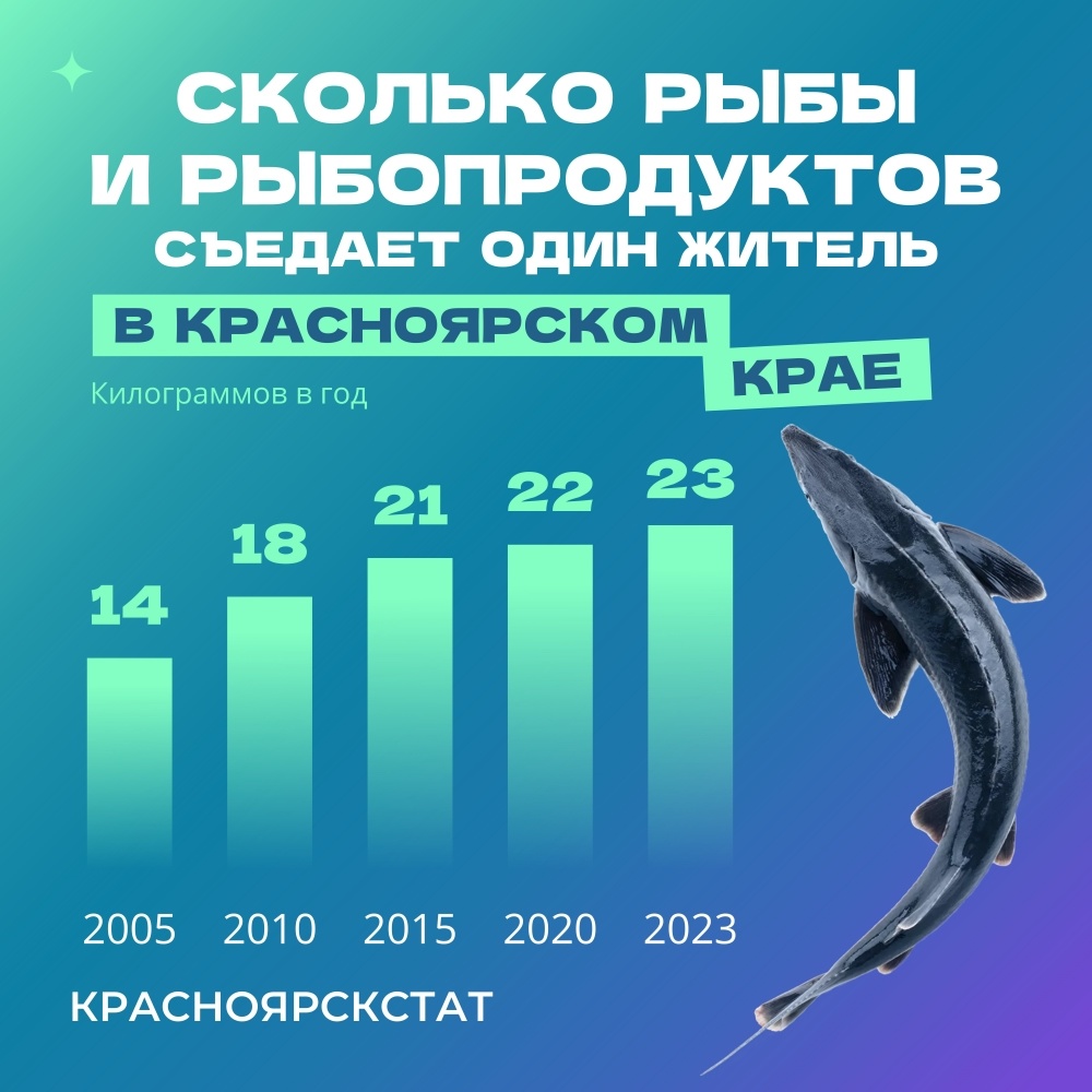 При этом городские жители едят меньше рыбы, чем жители сёл и деревень. Согласно рекомендации врачей, в год человеку требуется съедать не менее 24 кг рыбы. Польза этого продукта обусловлена наличием витаминов, микро- и макроэлементов, жирных кислот. В Хакасии горожане и селяне за год в среднем съедают по 19 кг. В Тыве жители городов потребляют по 9 кг, селяне — на 2 кг меньше. фото: vk.com/krasnoyarskstat, unsplash.com