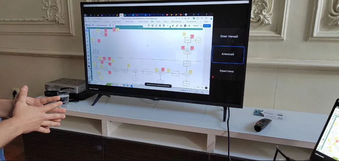 На фотографии можно увидеть и сам процесс аудита (схему мы рисовали онлайн в прямом эфире, созвонившись с нашими бизнес-аналитиками в СберДжазе), и руки нашего клиента, с которым я сидел вместе в коворкинге. Судя по рукам нашего клиента - процесс пошёл. И очень глубоко. И это очень хорошо!