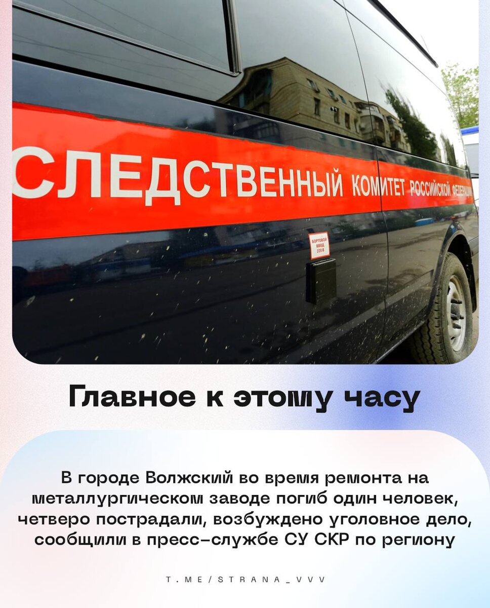 🇷🇺🇷🇺🇷🇺🇷🇺🇷🇺🇷🇺 на утро 11 июля: 🔹В городе Волжский во время ремонта на металлургическом заводе погиб один человек, четверо пострадали, возбуждено уголовное дело, сообщили в пресс-службе СУ СКР по региону. 🔹Многодетные семьи в РФ могут получить скидку на оплату услуг ЖКХ от 30% — зампред комитета ГД по строительству и ЖКХ Колунов. 🔹Работодателям стоит ослабить дресс-код для сотрудников на время жаркой погоды и подумать о переводе отдельных работников на гибридный график — депутат ГД Игорь Антропенко. 🔹Никаких ограничений для посещения храма, в том числе с целью укрыться от жары или от ливня, нет — РПЦ. 🔹Температура до +36 °C ожидается в Московском регионе в пятницу, а в выходные местами пройдут грозовые дожди, будет до +34 °C — «Фобос». UPD: Число отравившихся питьевой водой в Дагестане выросло до 372, среди них 357 детей, сообщили в Минздраве региона. В больницах остаются 97 человек. 💰Курсы валют: доллар — 📉77,90; евро — 📈91,50; юань — 📉10,82. 🇷🇺 В Стране.