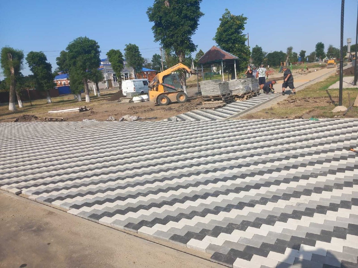 Подрядчик ООО "АМТ-СТРОЙ" приступил к укладке тротуарной плитки в парке им