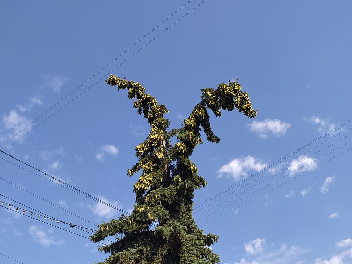 Отшумел вал возмущëнных публикаций с фото и видео последствий ураганной грозы, навкрывшей Кострому на днях. Я видела буйство стихии воочию, из окна, сняла это страшное, сильное явление. После работы прошла по городу, собрала фотоколлекцию разрушений, пострадала в основном живая природа. Этот репортаж в финале статьи, долистайте, посмотрите. В четверг обещали возвращение ужасной бури. На работу я пришла без зонтика, ибо смысла в нëм при порывах ветра 20 м/с нет вовсе. Но с веером, потому что духота жуткая и вымытые с утра волосы за час прогулки стали фу какими потными и противными. Спрятала их под ободок. На что потратила час перед работой? Прошлась по маршруту урагана, посмотрела на последствия, и вам покажу. На окраине города всë спокойно, тут хоть и был сильный ветер, но деревья устояли. Главный удар пришëлся именно на центральную часть Костромы. Начала от универмага. Совместила поиск последствий грозы и любование клумбами. В жизни так – всë рядом, печаль и улыбка, потери и