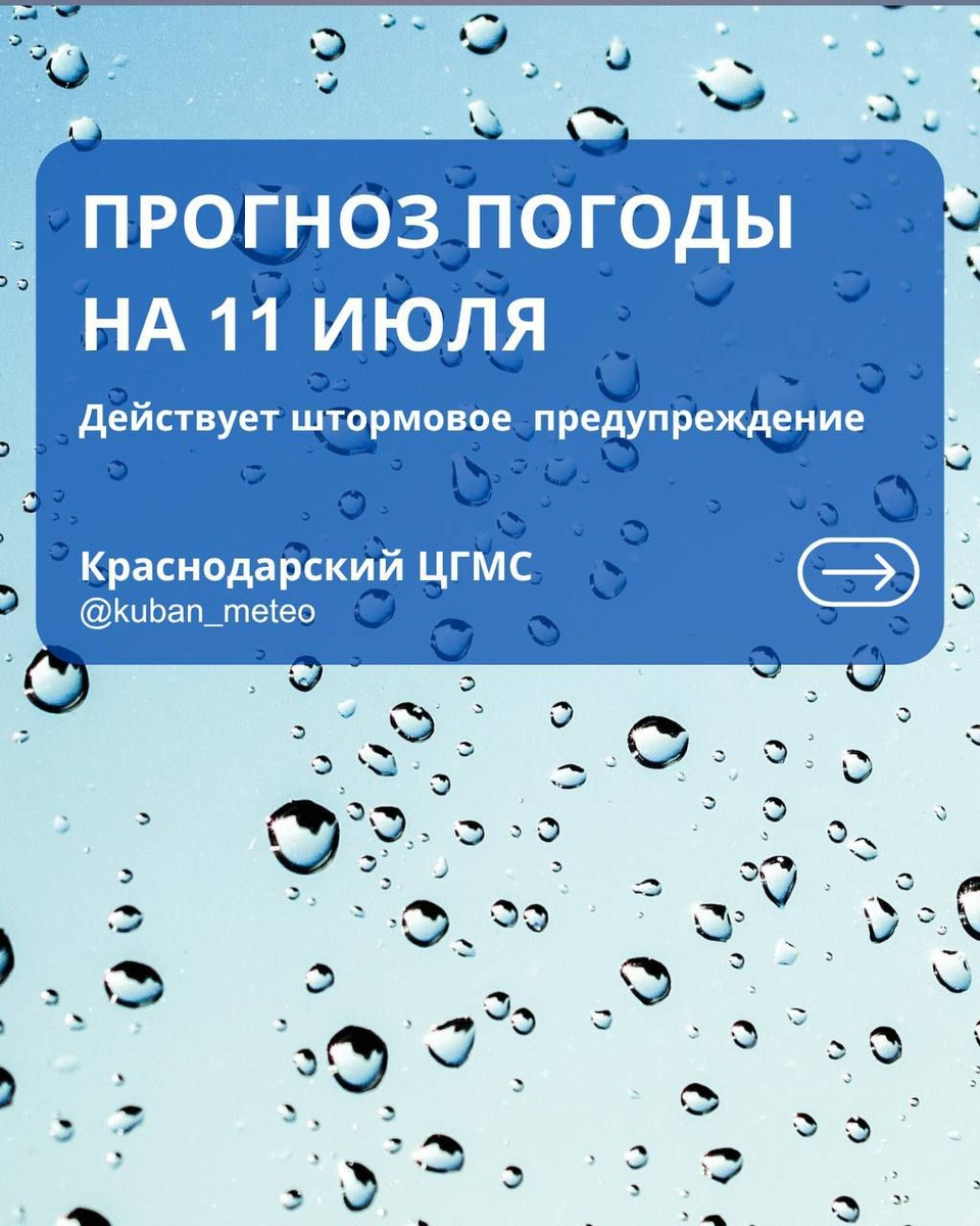 ☔️Прогноз погоды в Краснодарском крае на 11 июля