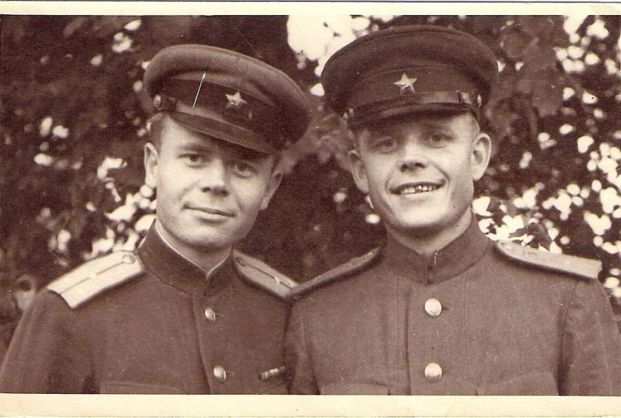 Слева на обеих фотографиях - мой дед, Кожемякин Иван Васильевич (ст. лейтенант, 1945 г.). На верхней фотографии справа - мой двоюродный дед Кожемякин Павел Васильевич (лейтенант Погран. войск НКВД, 1945 г.).