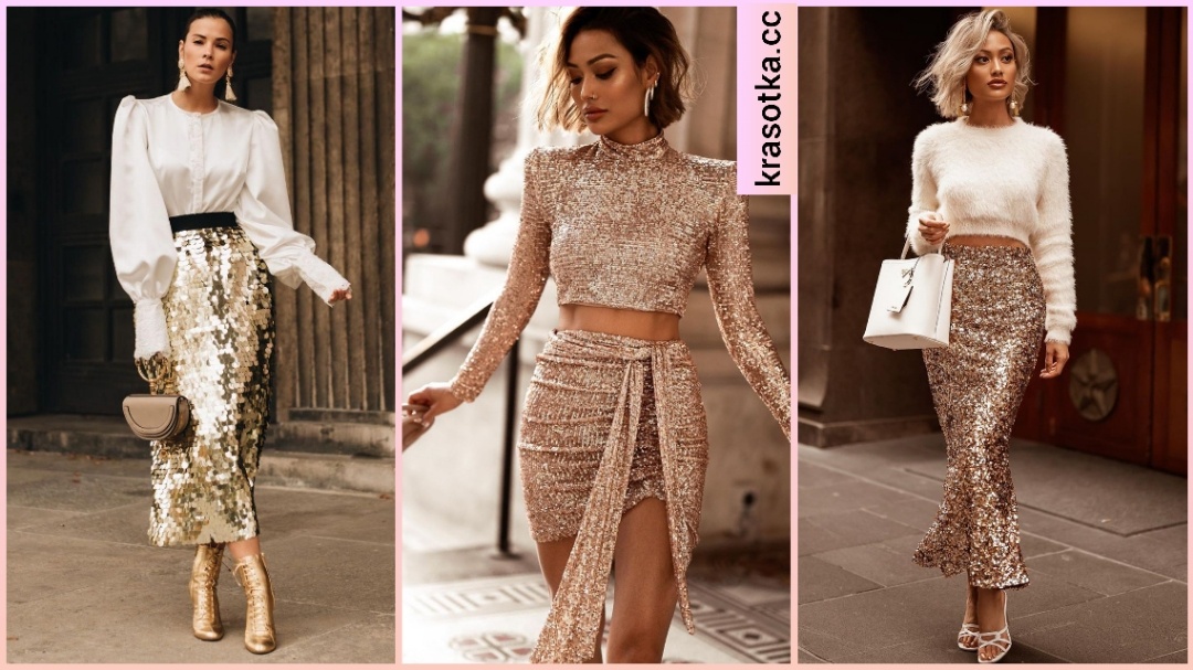 В последнее время блестящая юбка стала настоящим хитом моды. Многие дизайнеры активно включают ее в свои коллекции. Женщины обожают такие яркие элементы гардероба, но иногда не знают, с чем их сочетать. Проблема в том, что избыток блеска может сделать образ вульгарным и дешевым, вызывая негативные реакции. Блестящие наряды не подходят для офиса и деловых встреч. Однако они идеально подходят для торжественных мероприятий и вечерних выходов , подчеркивая красоту и стиль своей обладательницы. Давайте разберемся, какие модели блестящих юбок популярны в этом сезоне, в каких ситуациях их лучше носить и с чем сочетать. Блестящие вещи дают образу изящество и привлекательность. Юбка внесет в скучный и однообразный стиль разнообразия. Такую вещь можно одевать для вечернего выхода, и также для похода в кафе с друзьями. В этом сезоне популярны два фасона блестящей юбки: карандаш и плиссе. Модель блестящей юбки-карандаш – это вариант для стильных женщин. Она подчеркивает бедра и открывает аккуратны