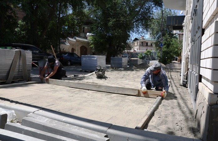 В ближайшие дни дорожники приступят к нанесению верхнего слоя покрытия. На одной из улиц центральной части Астрахани близки к завершению работы по благоустройству в рамках нацпроекта «Инфраструктура для жизни». Речь идет об ул. Чалабяна, где общая длина обновляемого участка составляет около 500 метров. Подрядная организация приступила к реализации проекта в апреле, и в настоящее время большая часть работ выполнена: демонтировано старое тротуарное покрытие, подготовлено основание и уложен выравнивающий слой. В ближайшие дни дорожники приступят к финальному этапу – нанесению верхнего слоя покрытия и разметке. Завершение ремонта запланировано на конец июля. Фото: пресс-служба губернатора АО