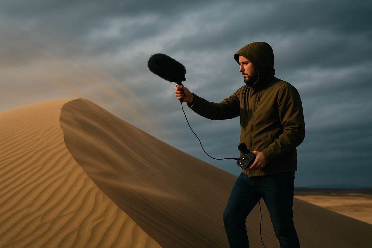 Сила не приходит по расписанию Я сидел и ждал дождя. Всё было готово: стеклянная крышка, железная миска, деревянная доска, зонт, куртка, полиэтилен. Прогноз обещал ливень, и я подготовил целый оркестр предметов, чтобы запечатлеть музыку дождя. Звук — моя новая страсть, как раньше была фотография. Теперь я ищу не свет, а звучание реальности. Но дождь не пришёл. В такие моменты внутренне начинаешь увядать. Всё было готово, но Сила, как будто, отвернулась. И вдруг — звонок. — Поехали на Капчагай, — говорит друг. — Мы через 10 минут в ТРЦ, заедем за продуктами. И всё. Это был щелчок — как в одной из моих притч: Сила не ждёт. Она действует. Я собрался на автомате. Вышел из дома. И когда дошёл до центра — они уже подошли. Всё случилось с идеальной синхронностью. Море вместо дождя Капчагай встретил нас бурей. Ветер срывал песок с барханов, как в кино. Волны били в берег. Песок струился по дугам, как жидкое золото. Мы разбили лагерь, и я — без колебаний — взял рекордер и камеру. Пошёл