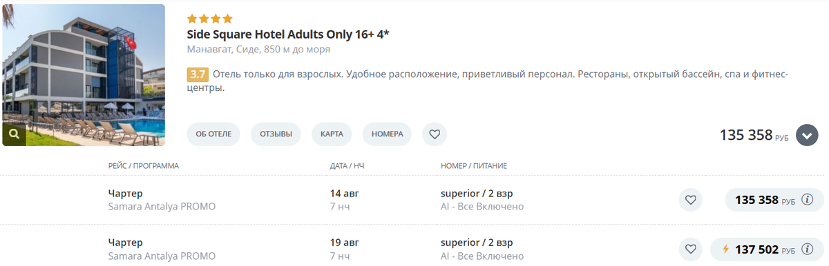 Ну, а теперь цена вопроса! Вот вам подборочки туров на 2 взрослых, проживание - 7 ночей, питание - все включено, вылет из Самары: