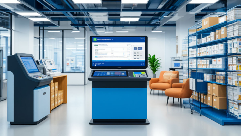 Зона самообслуживания — это специально оборудованный уголок в клиентском зале почтового отделения, где посетители могут самостоятельно оформить отправление: взвесить посылку, заполнить данные, распечатать бланк и оплатить услуги.