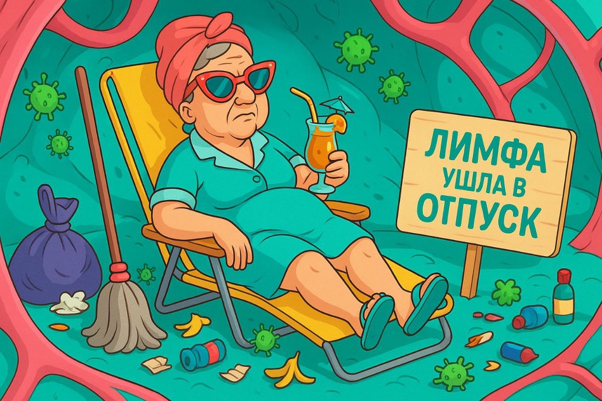 Доброе пятничное, красавицы! 🌞 Картинка-то забавная, а вот проблем из-за «отпуска» лимфы может вскрыться предостаточно! Как думаете, какие последствия проявятся на вашем лице и теле, если лимфа будет плохо справляться с работой? Просто отеки или что-то посерьезнее? Пишите в комментарии👇👇