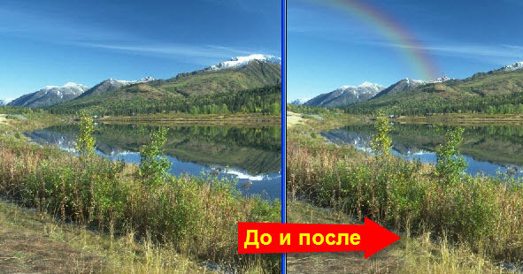 Радуга довольно редкое явление в природе и не всегда удаётся её увидеть. Но в фотошопе получить эффект радуги очень просто. Откроем исходное изображение. Создадим новый слой, для чего достаточно щёлкнуть по второй справа иконке в палитре "Слои". Выберем инструмент радиальный "Градиент" (G), от основного к фоновому и для его редактирования щёлкнем по полю градиента. Щёлкнем по крайнему нижнему правому маркеру, станет активным цветовое поле правее слова "Цвет:". Щёлкнем по этому цветовому прямоугольнику, откроется окно "Выберите цвет", в котором проставляем параметры цвета RGB, которые Вы видите на скриншоте ниже. Добавляем новый маркер. Для этого наводим курсор мыши на нужное место под полоску градиента и щёлкаем один раз левой кнопкой мыши, появляется новый маркер. Таким образом, я создал ещё два маркера (всего три). Присвоил им значения параметров цвета RGB, которые Вы видите на скриншоте ниже. Присвоение определённого цвета маркерам было сделано точно так же, как и описано выше для с
