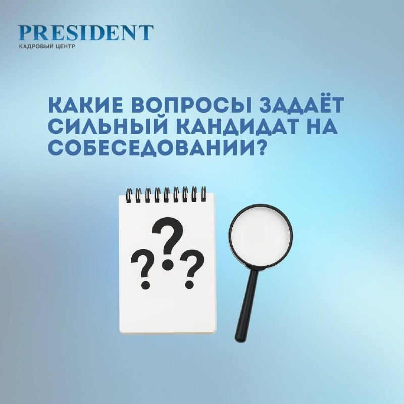 Подборка: Какие вопросы задаёт сильный кандидат на собеседовании Многие работодатели до сих пор удивляются: «Почему он так много спрашивает? Разве это не знак неуверенности?» Наоборот! Грамотный кандидат не молчит — он хочет понять, во что вкладывает свои силы и время. 💡Мы собрали примеры вопросов, которые чаще всего задают сильные, зрелые кандидаты. Они помогают увидеть их мотивацию и отношение к работе. Смотрите карточки — и не бойтесь диалога! #подборка #карточки #PRESIDENT #кадровыйцентрPRESIDENT #вопросынасобеседовании #подборперсонала #HRсоветы #рекрутинг #оценкакандидатов #интервью #работодатель