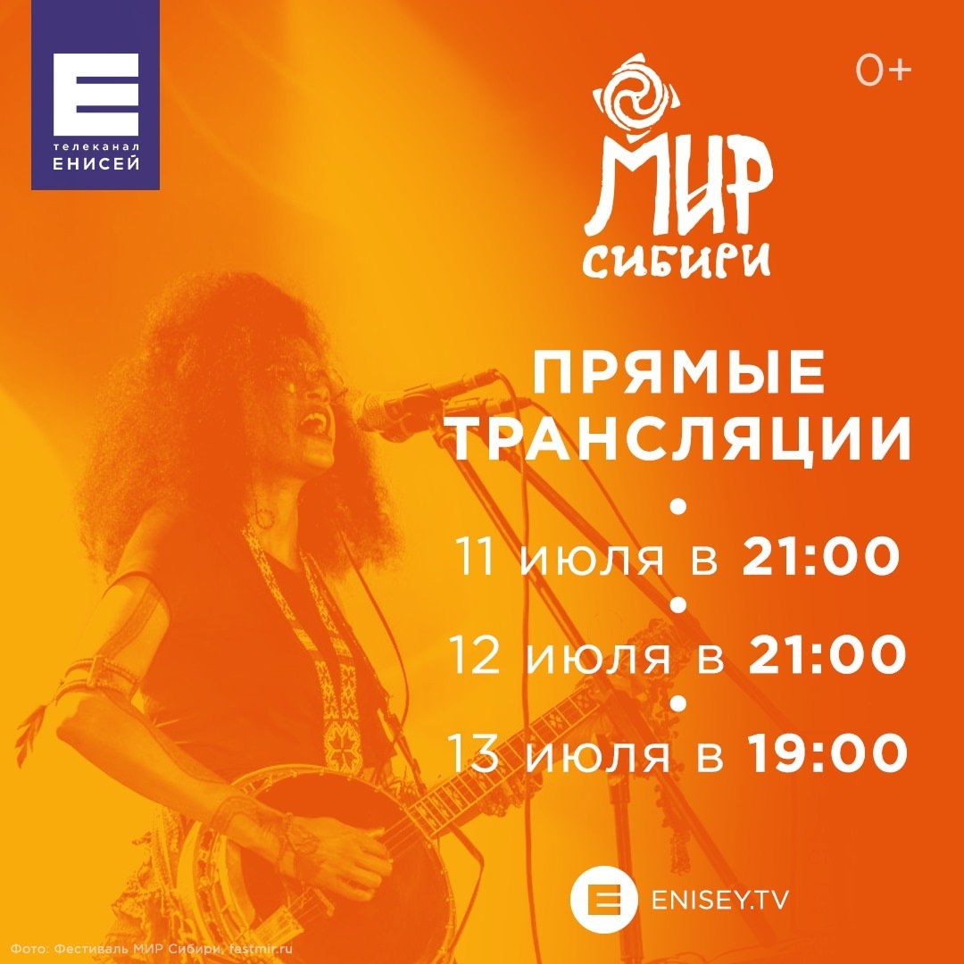 «МИР Сибири» в прямом эфире! Главное музыкальное событие лета под открытым небом – Фестиваль МИР Сибири проходит в эти дни в Шушенском. Марафон народных мелодий представят музыканты и исполнители из России, Сербии, Алжира, Армении, Грузии, Кубы, Китая и Франции. Организаторы приготовили для гостей и участников фестиваля большое количество тематических площадок. Команда СМИ из России, блогеры из разных стран и, конечно, корреспонденты государственных изданий освещают фестиваль. Самые интересные события фестиваля, как всегда, смотрите на краевом Телеканал Енисей в прямом эфире: ✅11 июля в 21:00 открытие фестиваля. ✅12 июля в 21:00 выступление Morgane Ji и Красноярского филармонического русского оркестра, Mysterain, Gurude. ✅13 июля в 19:00 гала-концерт. Выступят «Новая Азия», ансамбль «Оберег» и другие.