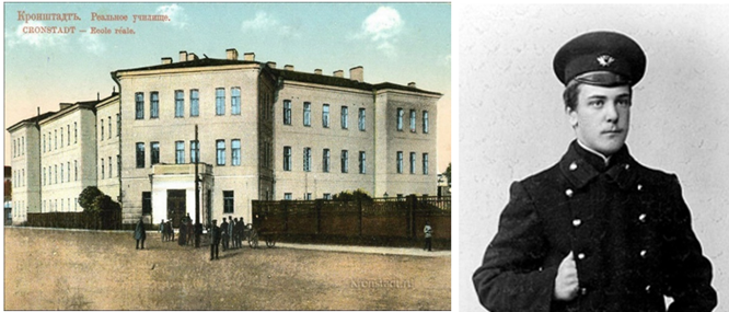 Кронштадтское реальное училище (основано в 1872 году. В училище занимались только мальчики, а педагогами были только мужчины. Общее платное обучение длилось 6 лет, а те учащиеся, которые хотели поступать и высшие учебные заведения или в военные училища дополнительно обучались ещё один год. К 1914 году в Российской империи существовало 284 реальных училищ, в которых обучалось более восьмидесяти тысяч человек). Выпускник Кронштадтского реального училища Пётр Капица 1912 года (в 1986 году кронштадтской школе № 425, которая размещалась и сегодня размещается в стенах бывшего реального училища было присвоено его имя).