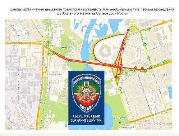 В субботу с 14:00 до 23:00 в Казани будет перекрыт ряд улиц в районе «Ак Барс Арены» в связи с проведением матча за Суперкубок России