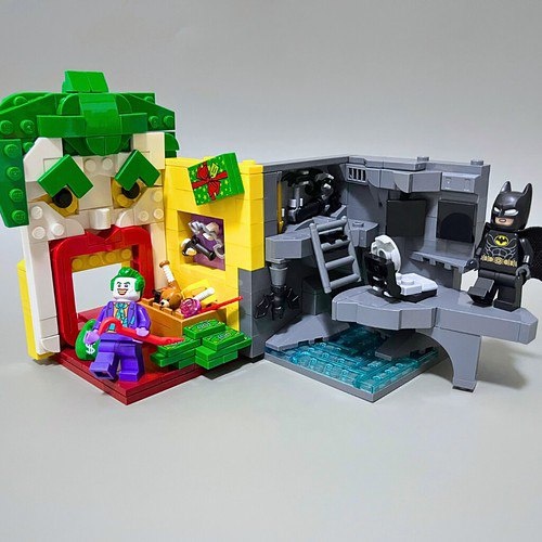 Двойная вселенная DC от ABrickDreamer: Бэтмен и Джокер 🏠🔥 Потрясающий диорамный дуэт: слева — технологичная Бэтпещера с компьютером и рабочим столом, справа — хаотичное логово Джокера с банками химикатов и кучей налички! Минифигурки передают атмосферу идеально. Автор выложил туториал — отличный шанс повторить или вдохновиться. DC-фанам точно зайдёт! Источник: Flickr Lego Builders group
