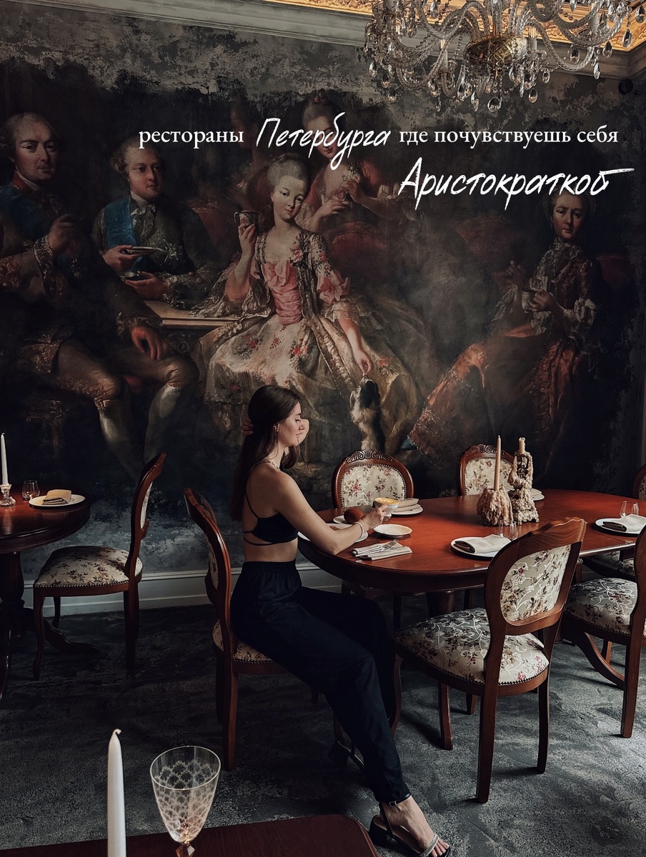 Иногда так хочется ненадолго вырваться из привычного ритма жизни и на пару часов перенестись в другую эпоху. Петербург как будто создан для этого. Он весь — про элегантность, величие и тайны прошлых столетий. Я собрала для вас подборку ресторанов и баров города, где интерьеры прямо дышат той самой «аристократичной» атмосферой и в которых можно почувствовать себя героиней из романов прошлых столетий, пришедшей на светский завтрак или ужин. Места, куда можно выгулять красивое платье и каблуки, заказать бокал вина и позволить себе эти два часа жить чуть медленнее, наслаждаясь каждым моментом. Специализируется на блюдах с необычными сочетаниями шоколада и какао-бобов. Представьте: вы сидите за столиком в интерьере, выдержанном в классическом французском стиле, где на одной из стен красуется огромная фреска — копия знаменитой картины Жан-Батиста Шарпантье «Чашка шоколада». адрес: Большая Зеленина ул., 34 Ресторан, где история буквально витает в воздухе. Он был основан ещё в середине XIX век
