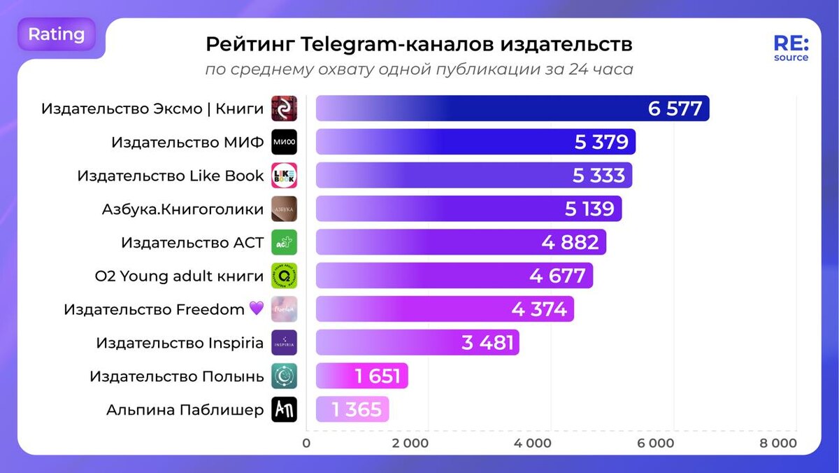 У издательств Эксмо и Like Book — лучшие Telegram-каналы по охватам и количеству репостов