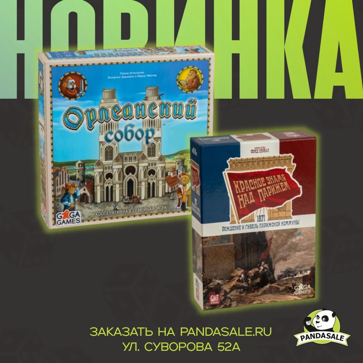 ☀☀☀Две жаркие (как ростовская погода) новинки от GaGa Games уже в наличии в PandaSale! Орлеанский Собор — семейная кооперативная стратегия по мотивам легендарного Орлеана. Вместе вы будете добывать ресурсы и строить величественный собор XVI века. Причём строить по-настоящему, собирая по кусочкам картонную 3D-модель. Дети от этого занятия просто в восторге! Да и не только дети, как оказалось. 🕍 Начать строительство собора → vk.cc/cNC8Z8 Красное Знамя над Парижем — военно-историческая дуэльная стратегия, иллюстрирующая взлёт и падение Парижской Коммуны. А ещё это варгейм, в который можно сыграть всего за 40 минут! Возглавьте одну из сторон асимметричного конфликта и решите судьбу Франции прямо во время обеденного перерыва 🔥 Устроить революцию за 40 минут→ vk.cc/cNC8WC 📍 Приехать: Суворова 52а 🐼 Заказать: pandasale.ru ☎ Позвонить: +7 (908) 177-87-17 #PandaSale #PandaNew