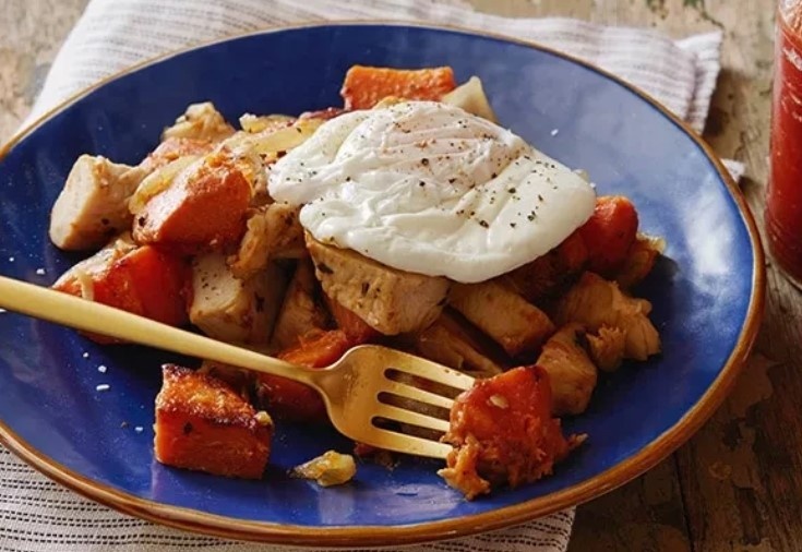 яйца пашот рецепт, индейка с бататом, пюре из сладкого картофеля, белковый завтрак, полезный ужин после тренировки Здорова, гурманы мои! Сегодня готовим такую красоту, что глядя в тарелку, хочется сказать: «Ну я и богач, ну я и эстет». На повестке дня — яйца пашот с запечённой грудкой индейки и пюре из батата. Звучит, конечно, как будто с тобой на кухне Джейми Оливер плечом к плечу, но на деле — всё просто, как сварить пельмени, только без пельменей. Это блюдо не из разряда «сделал и залип в сериальчик». Оно из тех, что ешь и думаешь: вот она — жизнь! Особенно если жахнуть сверху немного острого соуса, чтобы аж уши загорелись от удовольствия.🛒 Ингредиенты на 4 порции (да, можно съесть две — кто ж запретит):