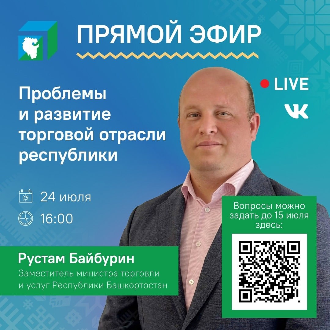 В преддверии Дня торговли на эти и другие вопросы жителей ответит заместитель министра торговли и услуг Республики Башкортостан Рустам Байбурин. Прямой эфир из Центра управления республикой смотрите 24 июля в 16:00.
