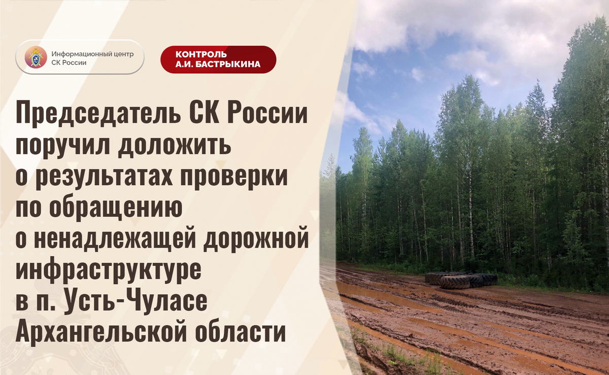 Председатель СК России поручил доложить о результатах проверки по обращению о ненадлежащей дорожной инфраструктуре в п. Усть-Чуласе Архангельской области В Информационный центр СК России поступило обращение по вопросу нарушения прав жителей поселка Усть-Чуласы Архангельской области на качественную дорожную инфраструктуру. На протяжении длительного времени автодорога из села Олемы до села Лешуконского находится в непригодном состоянии: отсутствует асфальтовое покрытие, на поверхности образовались многочисленные ямы, в период выпадения осадков грунтовое полотно размывается. В результате проезд по ней транспортных средств затруднен, местные жители не могут добраться до социально значимых объектов. Несмотря на выделение бюджетных средств, мер к организации ремонтных работ не принимается. Ситуация освещалась в СМИ. В СУ СК России по Архангельской области и Ненецкому автономному округу начата процессуальная проверка. Председатель Следственного комитета Российской Федерации Александр Иванович