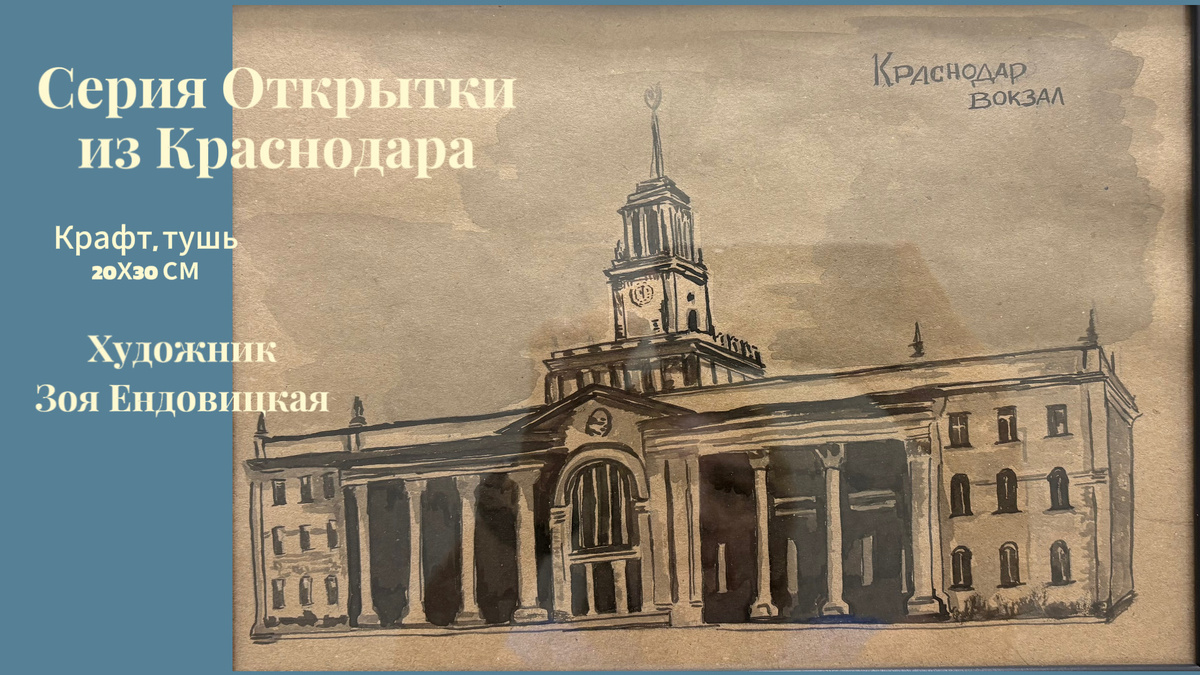 Цвет рамы венге. Рама со стеклом, Серия Открытки из Краснодара, крафт, тушь, 20х30 см. Стоимость 700₽