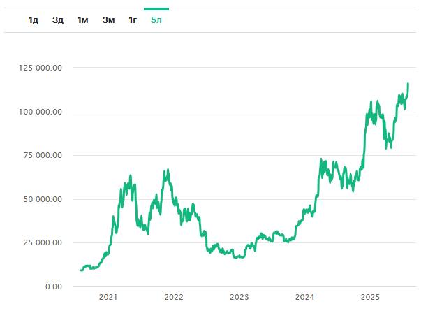 Курс биткоина впервые в истории преодолел отметку $118 000 .