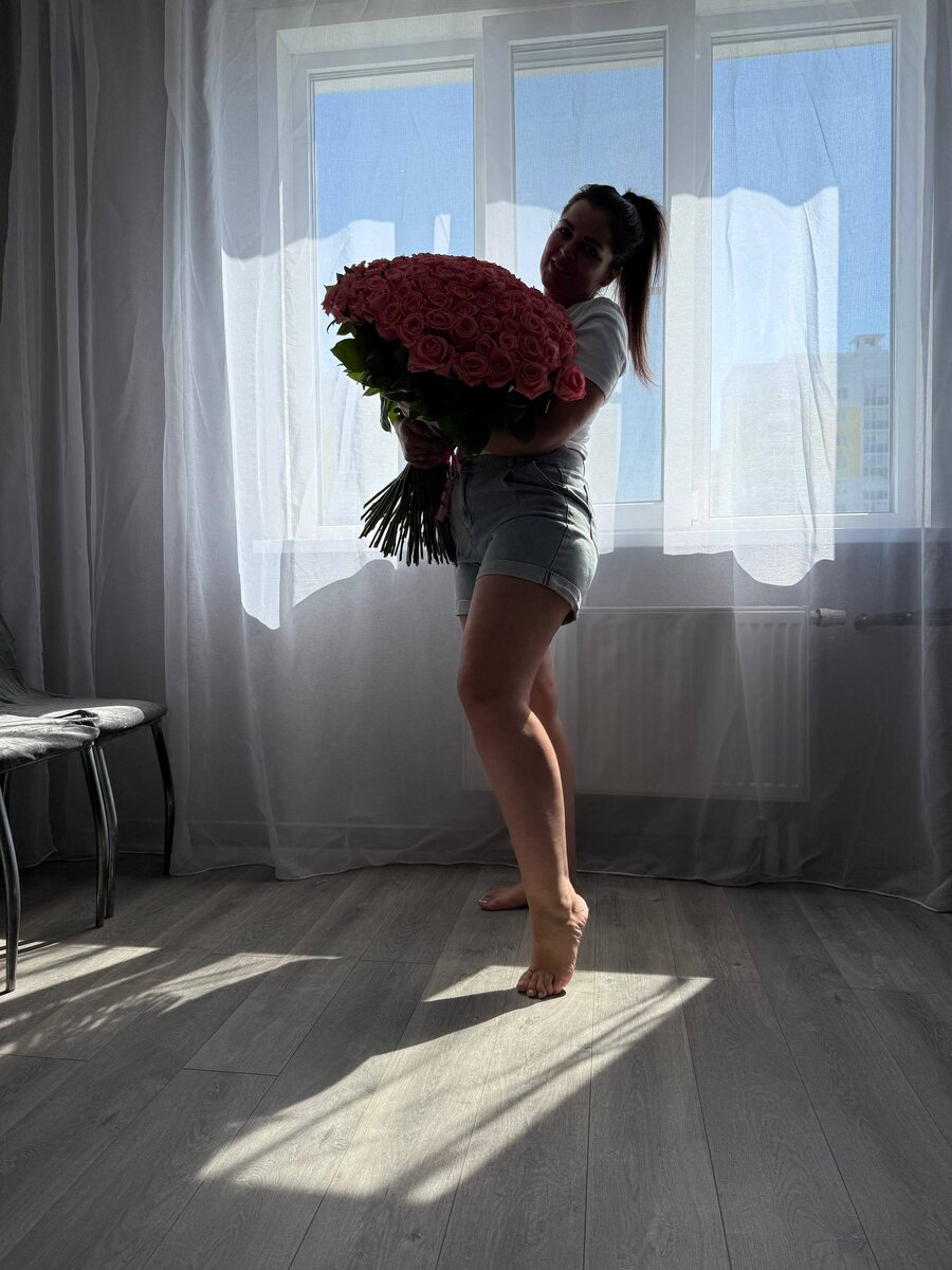 Красивая я с букетом от мужа ♥️ Еще и в шорты влезла старые, сразу две радости 😃
