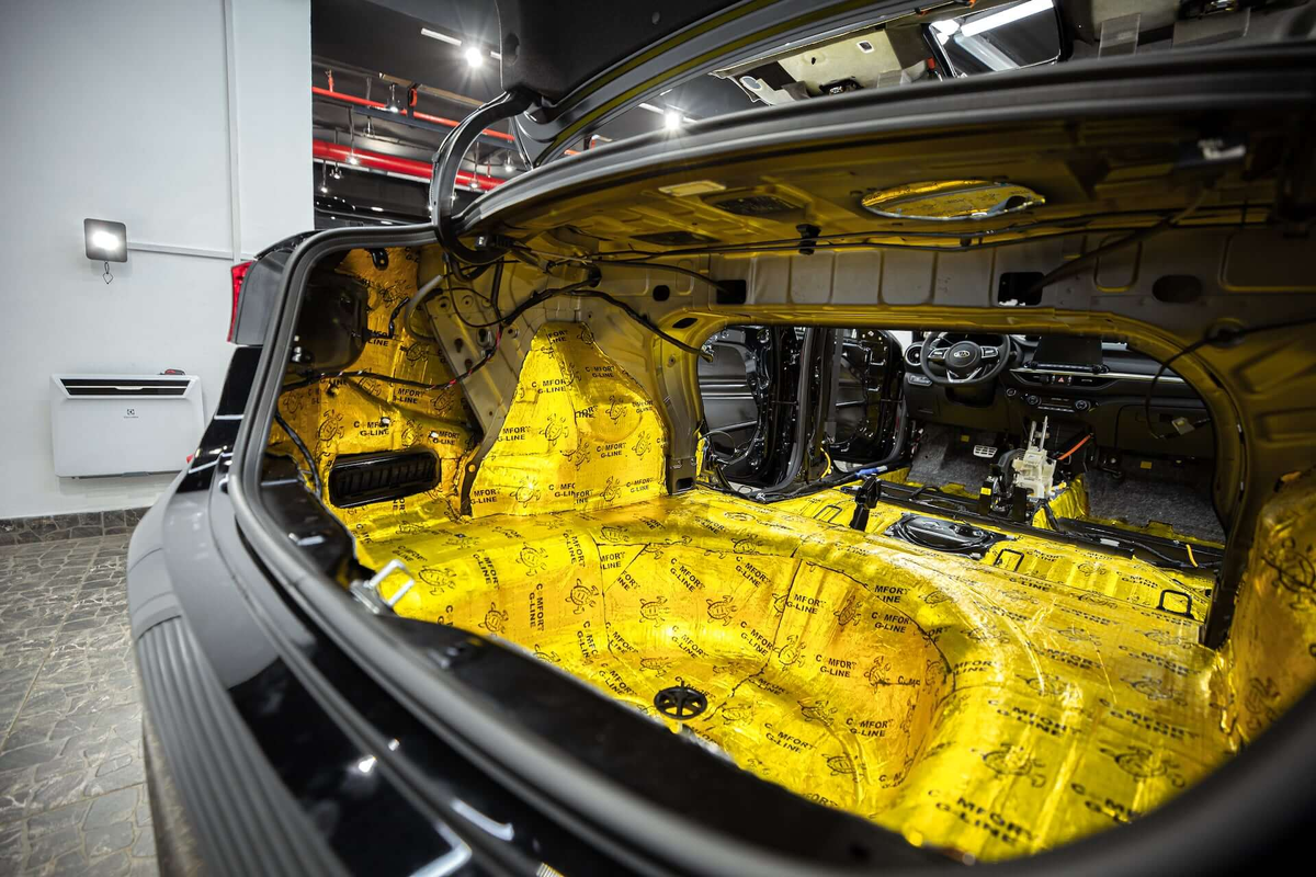 Виброизоляция — это специальные материалы, которые уменьшают вибрации кузова и элементов автомобиля, передающиеся во время движения. В результате снижается уровень шума в салоне, уменьшается усталость водителя и пассажиров, а также повышается долговечность кузовных деталей.