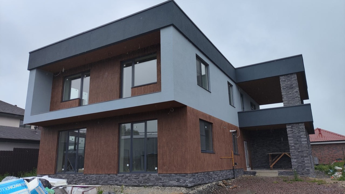 Друзья! ☀️🏗 В это лето, несмотря на непростую погоду, мы успешно завершили ещё один проект — фасад с плоской кровлей! 🏡✨ Фасад утеплялся