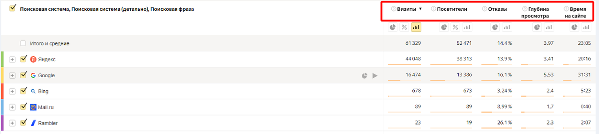Процент отказов – это доля тех, кто быстро покинул сайт. Но понимание этого «быстро» у поисковиков отличается: