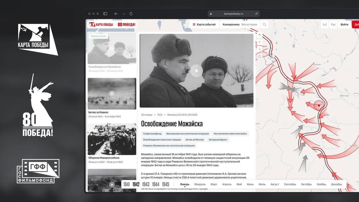 Запущен мультимедийный проект «Карта Победы», приуроченный к празднованию 80-летия Великой Победы и Году Защитника Отечества